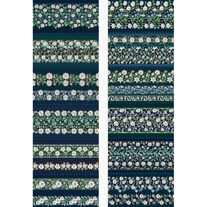 Descrição Tecido Tricoline Digital Barrado Margaridas Fundo Azul