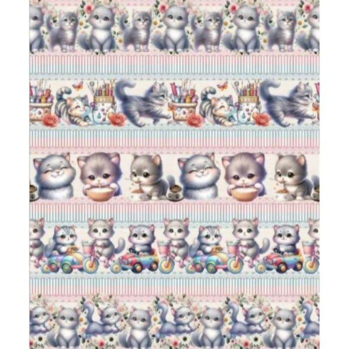 Descrição Tecido Tricoline Digital Barrado My Cat