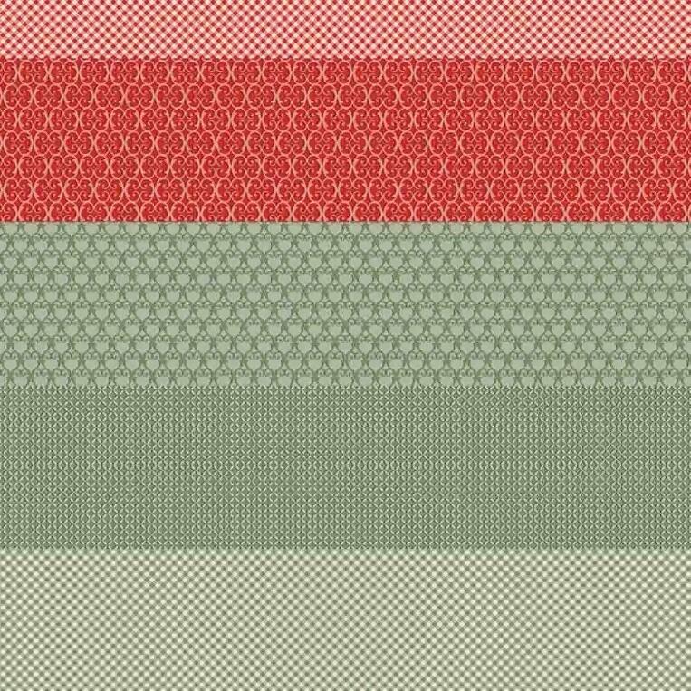Descrição Tecido Tricoline Digital Barrado Natal Bege e Vermelho