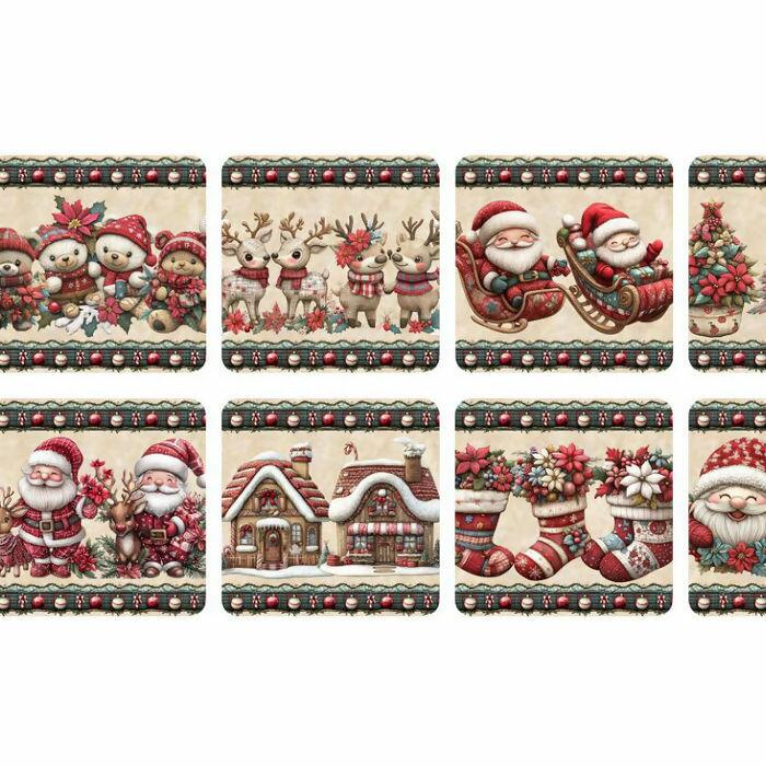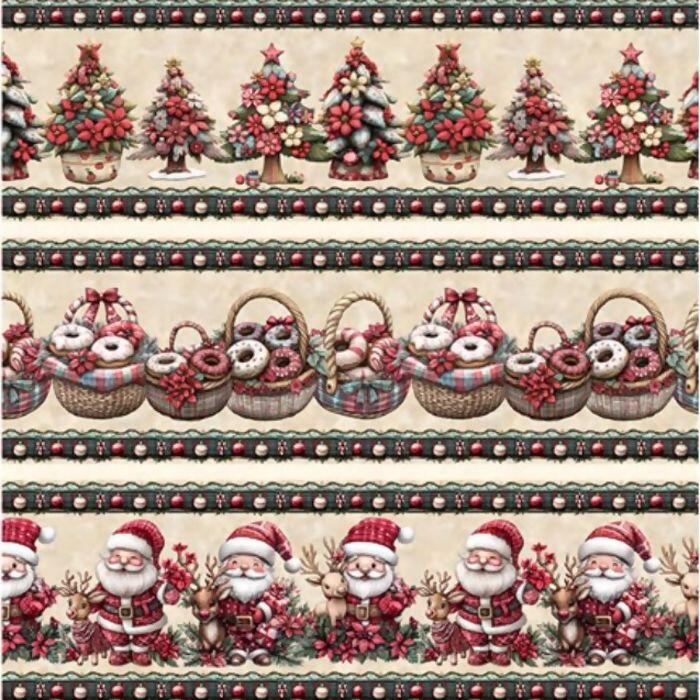 Descrição Tecido Tricoline Digital Barrado Natal Cute 3