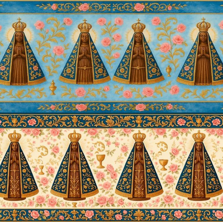 Tecido Tricoline Digital Barrado Nossa Senhora Aparecida