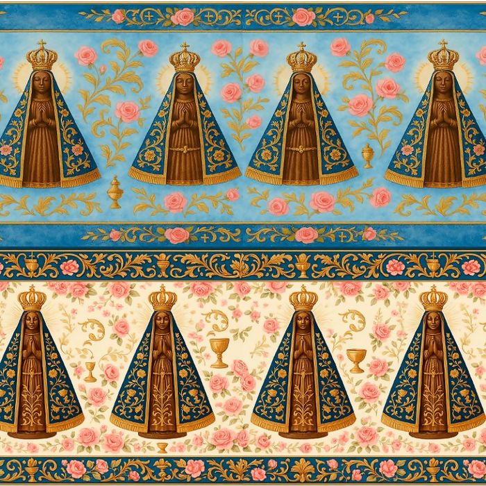 Descrição Tecido Tricoline Digital Barrado Nossa Senhora Aparecida