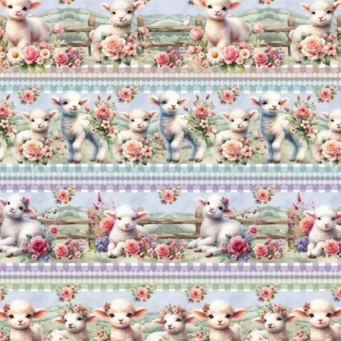 Descrição Tecido Tricoline Digital Barrado Ovelhinhas