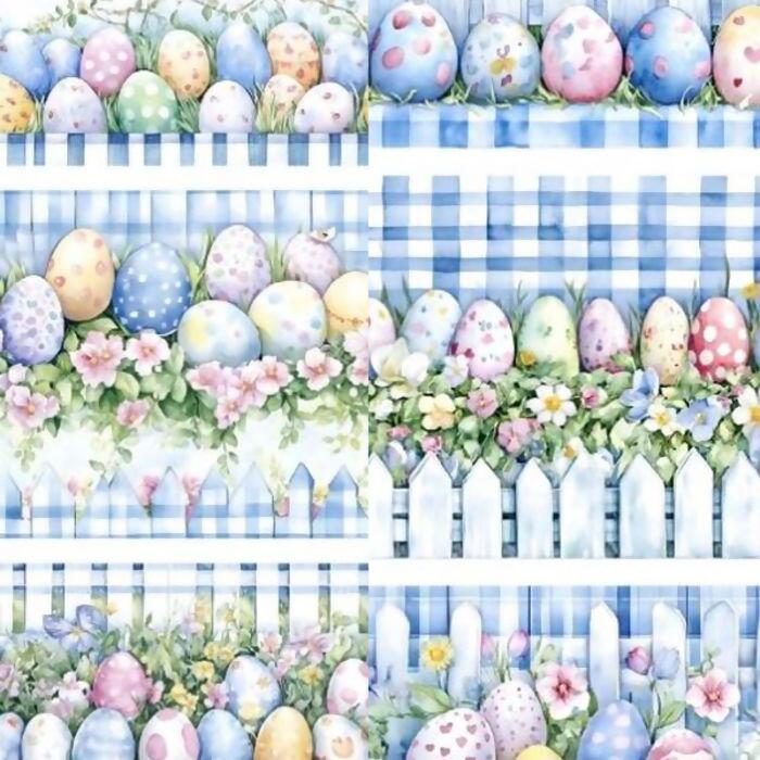 Descrição Tecido Tricoline Digital Barrado Ovos Fundo Xadrez