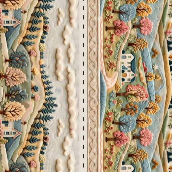 Descrição Tecido Tricoline Digital Barrado Paisagem Feltro