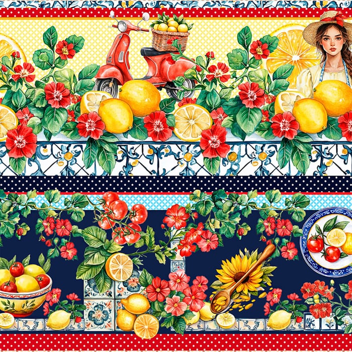 Descrição Tecido Tricoline Digital Barrado Paisagens