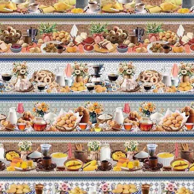 Descrição Tecido Tricoline Digital Barrado Pão de Queijo