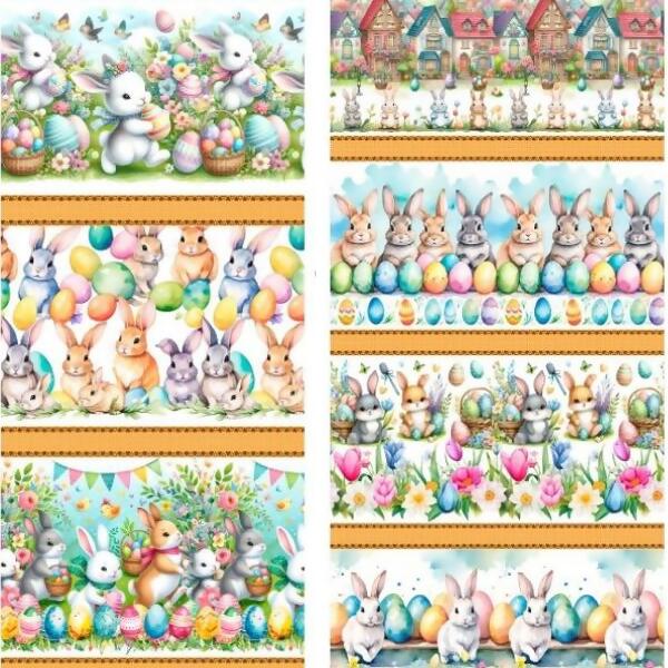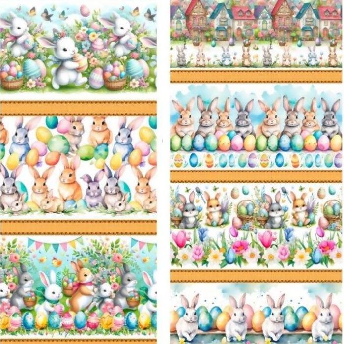 Descrição Tecido Tricoline Digital Barrado Páscoa Aquarelado