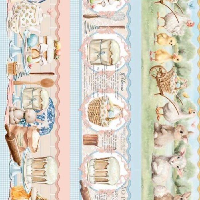 Descrição Tecido Tricoline Digital Barrado Páscoa Candy Flores E Coelhos