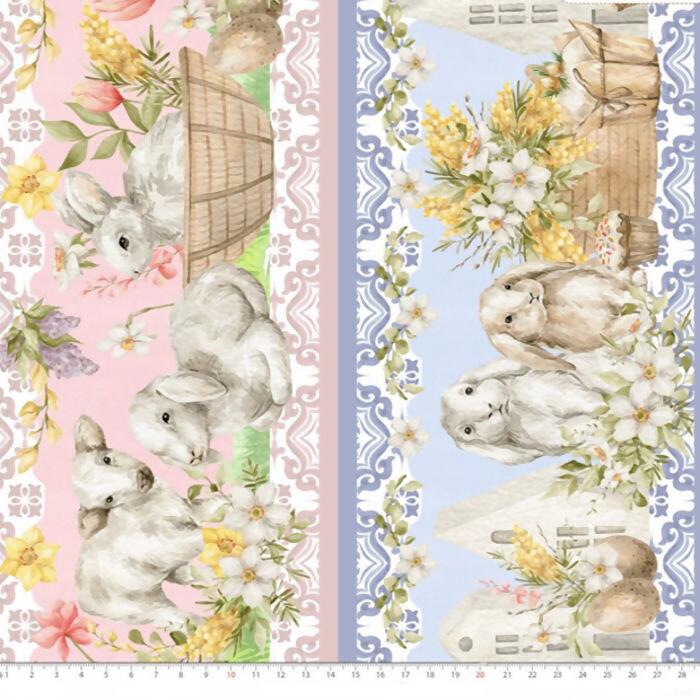 Tecido Tricoline Digital Barrado Páscoa Coelho Bolos Flores