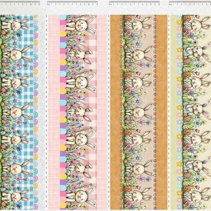 Tecido Tricoline Digital Barrado Páscoa Coelhos Fundo Xadrez