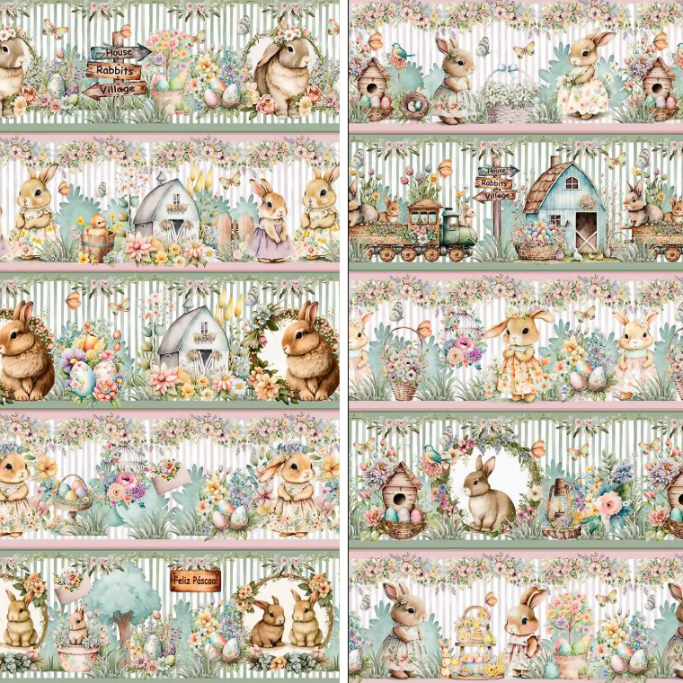 Descrição Tecido Tricoline Digital Barrado Páscoa Doce