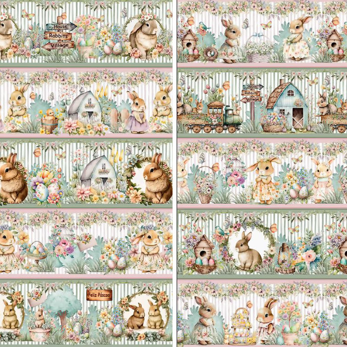 Tecido Tricoline Digital Barrado Páscoa Doce