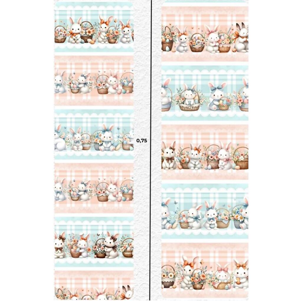 Tecido Tricoline Digital Barrado Páscoa Fofa