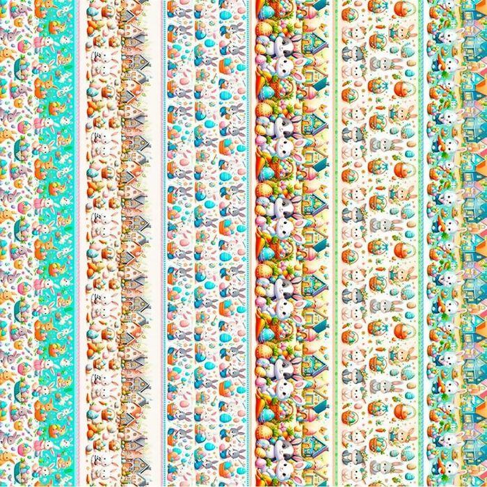 Tecido Tricoline Digital Barrado Páscoa Mini Coelhos
