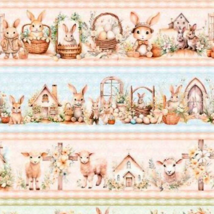 Descrição Tecido Tricoline Digital Barrado Páscoa Real Sentido
