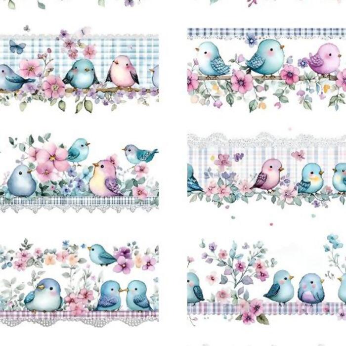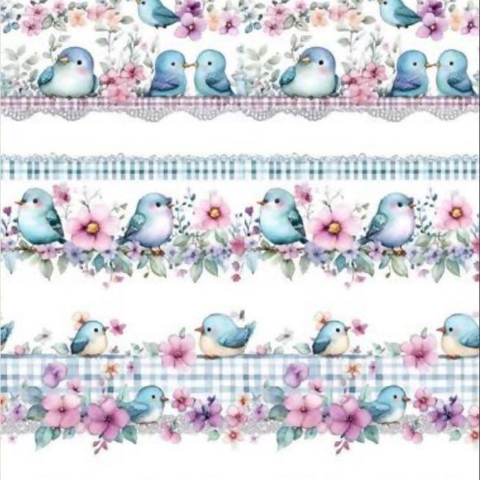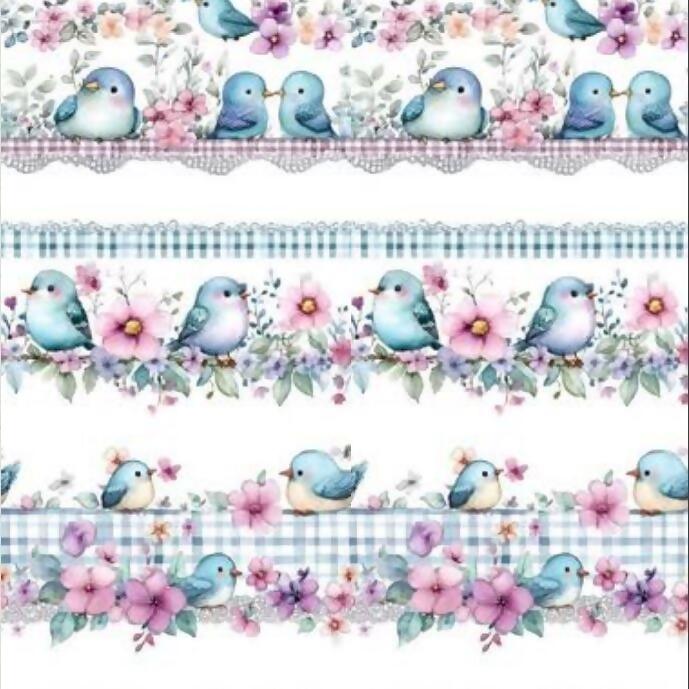 Tecido Tricoline Digital Barrado Passarinhos Aquarela