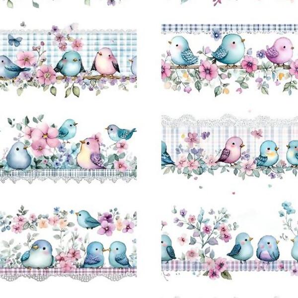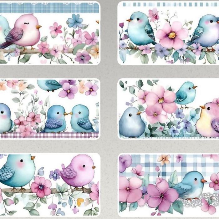 Descrição Tecido Tricoline Digital Barrado Passarinhos Aquarela