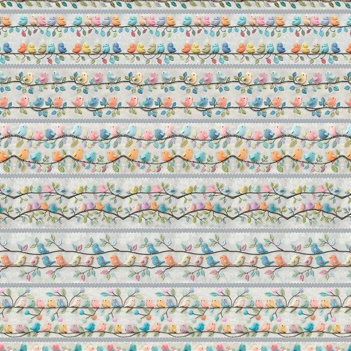 Descrição Tecido Tricoline Digital Barrado Passarinhos