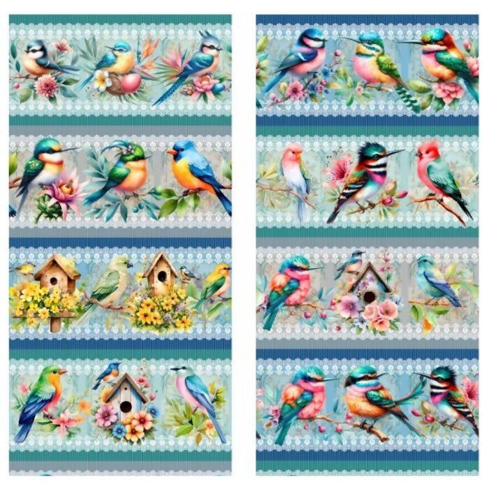 Descrição Tecido Tricoline Digital Barrado Pássaros