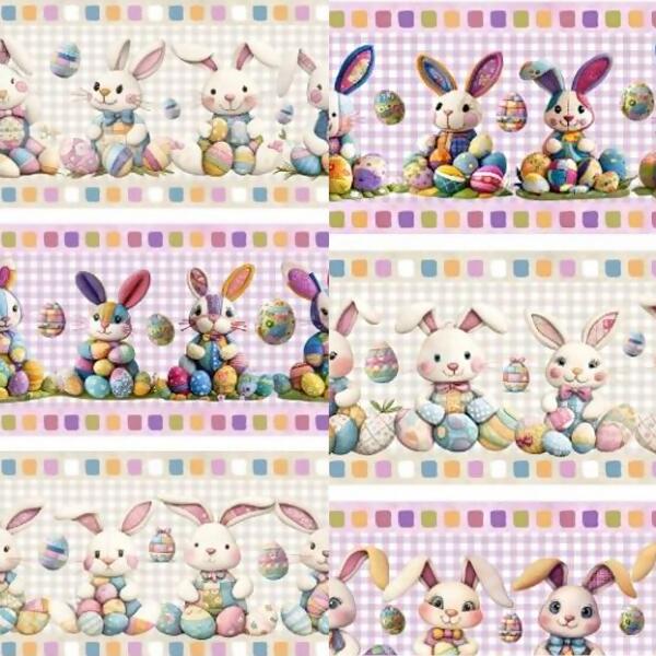 Descrição Tecido Tricoline Digital Barrado Patch Páscoa