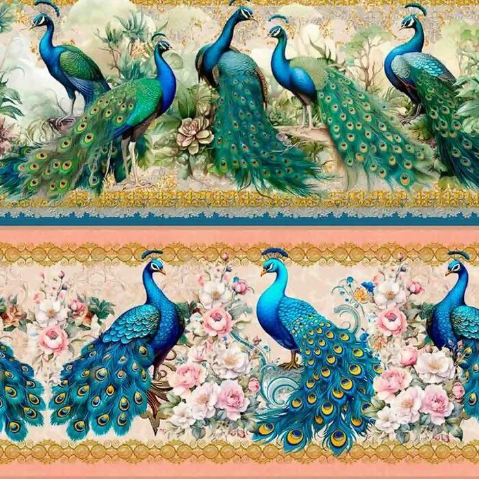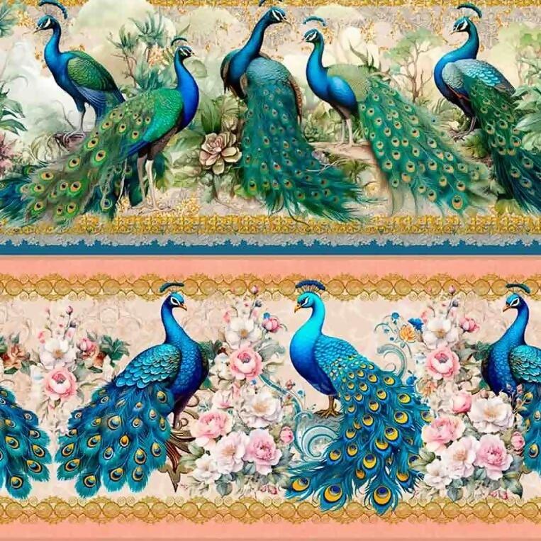 Descrição Tecido Tricoline Digital Barrado Pavão