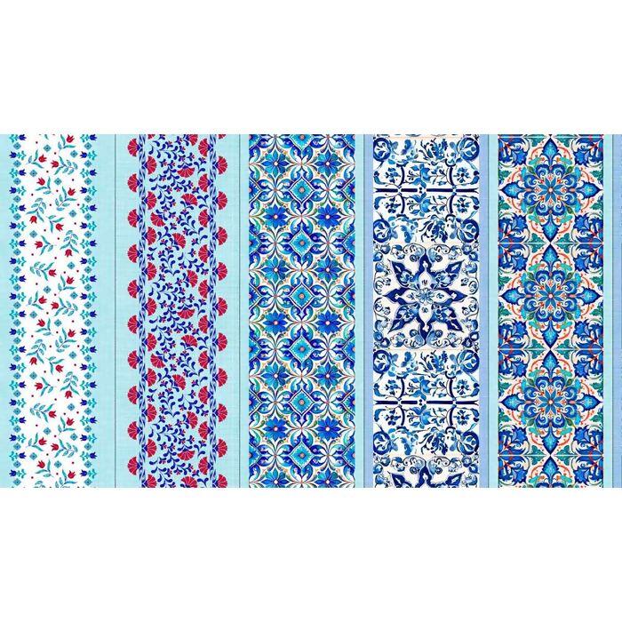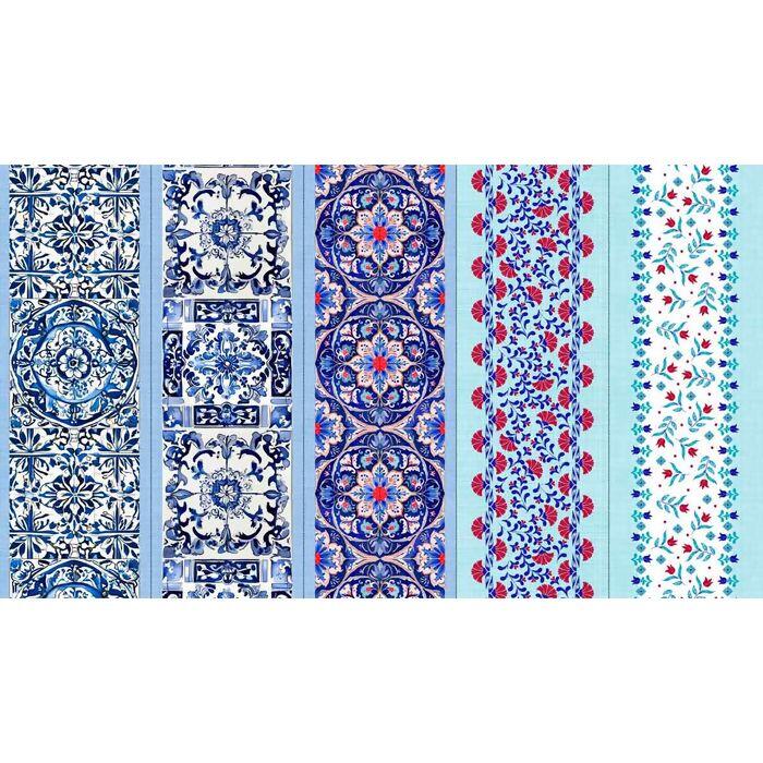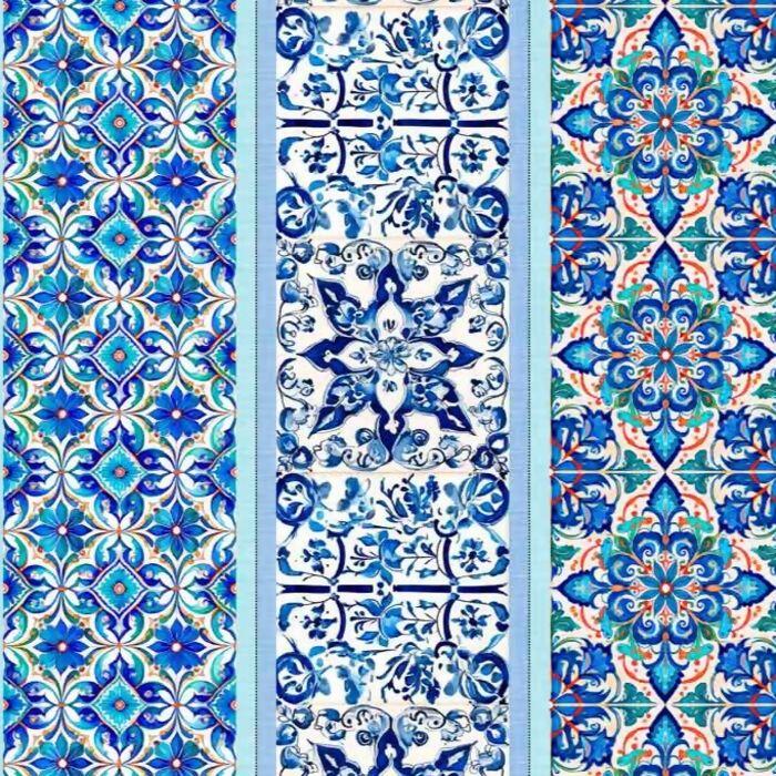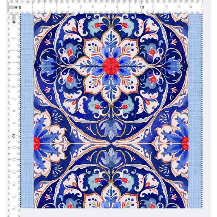 Tecido Tricoline Digital Barrado Reativa Cerâmica Azul