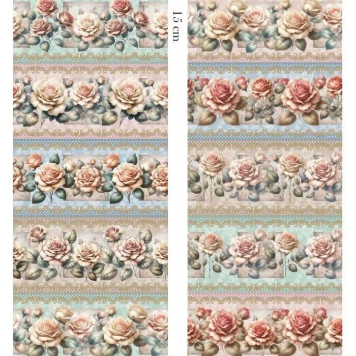 Tecido Tricoline Digital Barrado Rosas Vintage