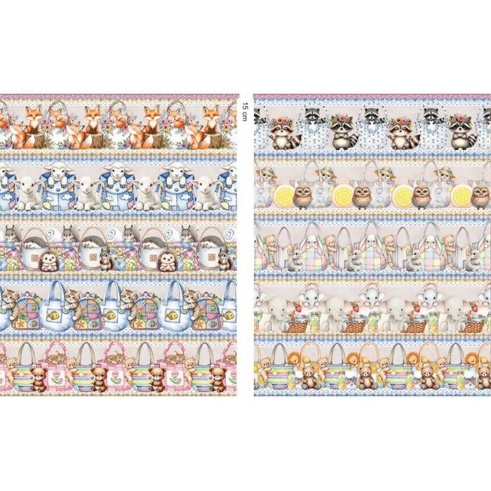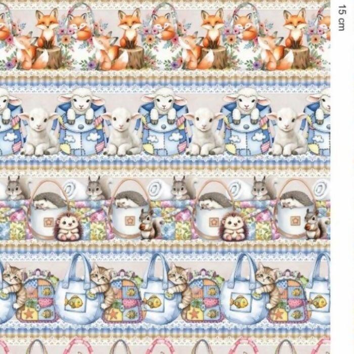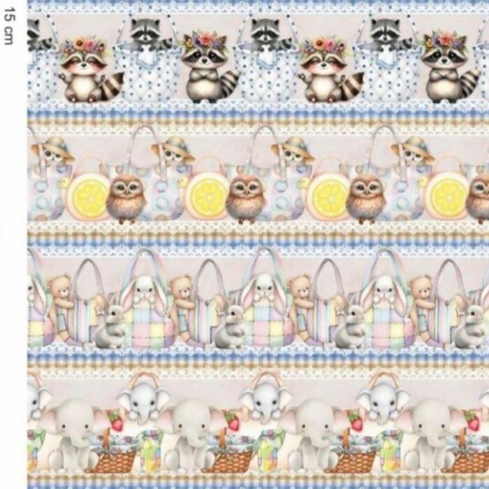 Tecido Tricoline Digital Barrado Sacolas com Bichinhos