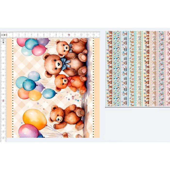 Tecido Tricoline Digital Barrado Ursinhos e Balões