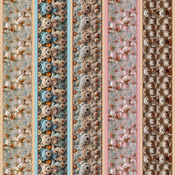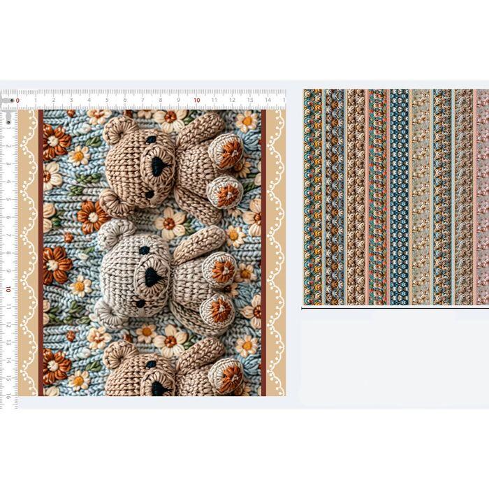 Tecido Tricoline Digital Barrado Ursos de Crochê Flores