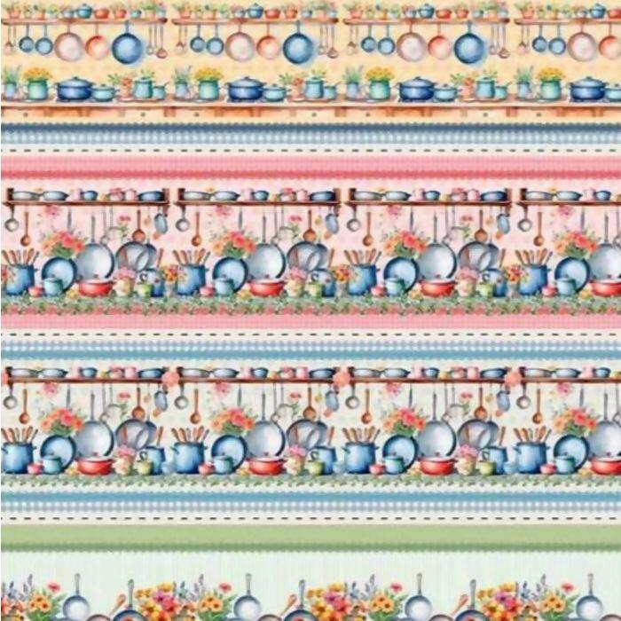 Tecido Tricoline Digital Barrado Utensílios
