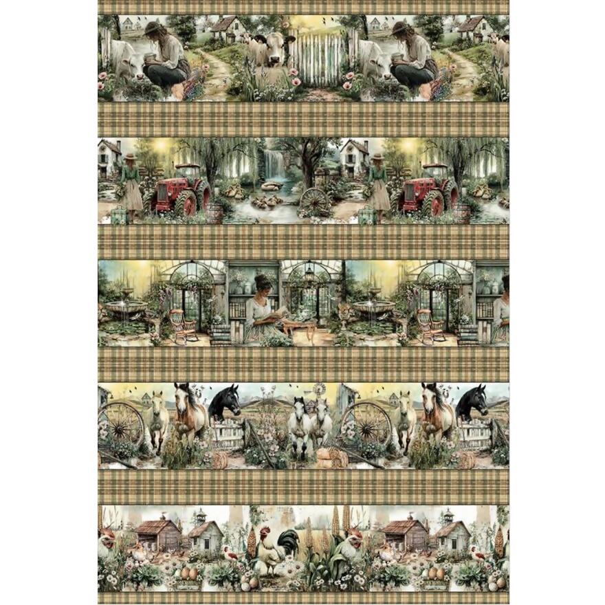 Tecido Tricoline Digital Barrado Vida no Campo
