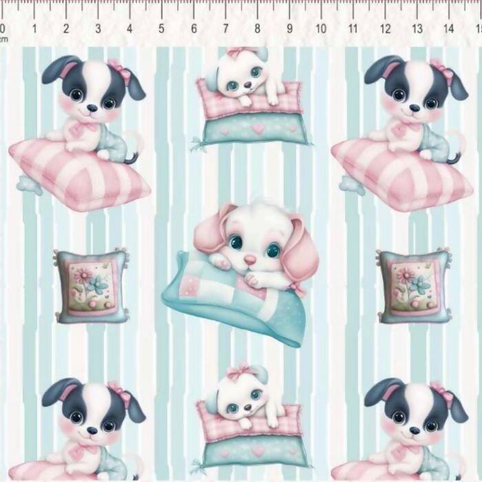 Tecido Tricoline Digital Bichinhos Fofos Listras