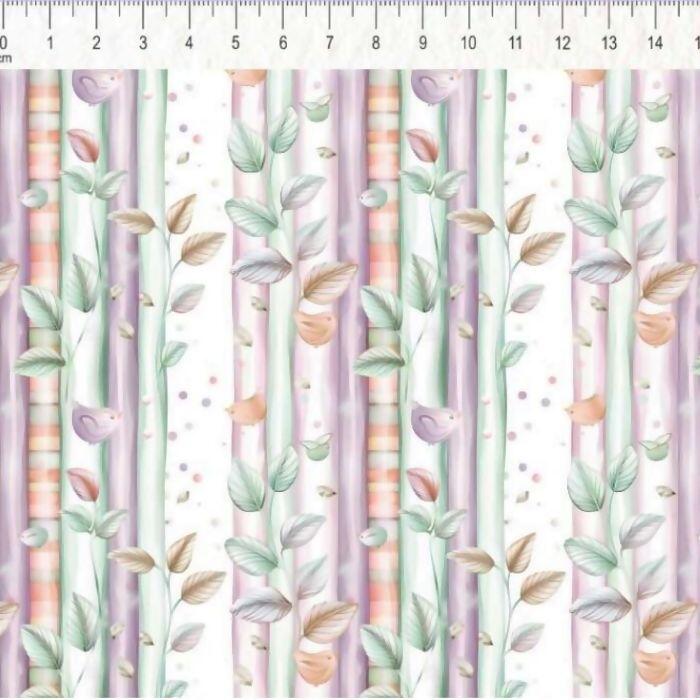Descrição Tecido Tricoline Digital Birdies Dream Listras