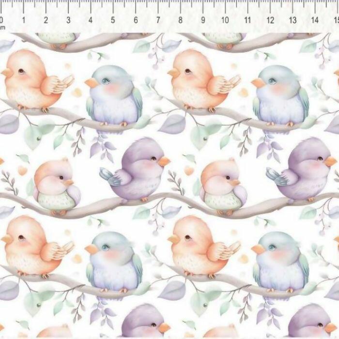 Descrição Tecido Tricoline Digital Birdies Dream Pássaros e Galhos