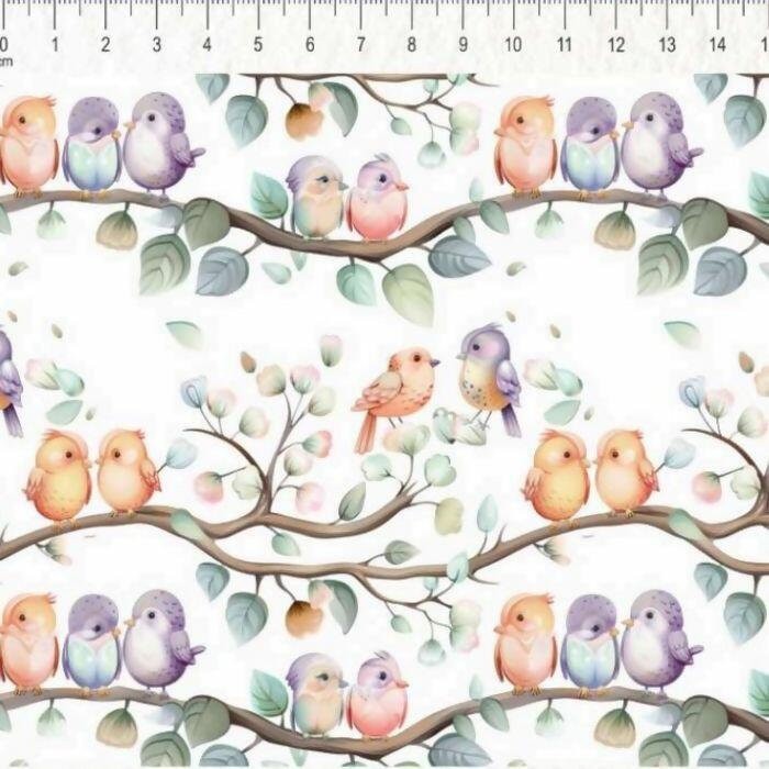 Descrição Tecido Tricoline Digital Birdies Dream Pássaros