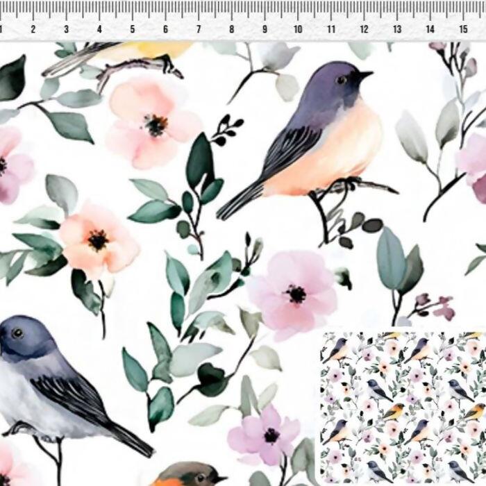 Descrição Tecido Tricoline Digital Black Bird Pássaros Grandes