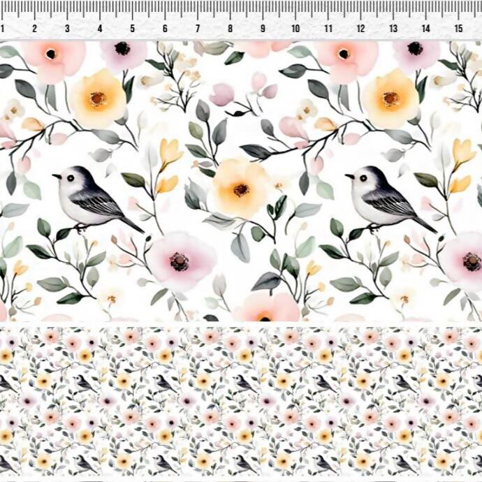 Descrição Tecido Tricoline Digital Black Bird Pássaros Pequenos