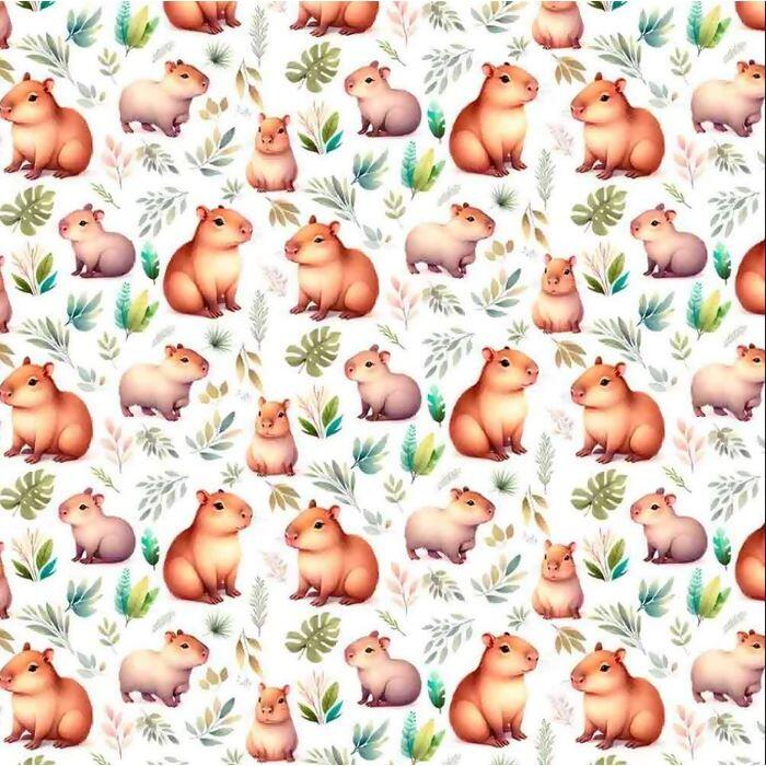 Descrição Tecido Tricoline Digital Boho Woodland Capivara
