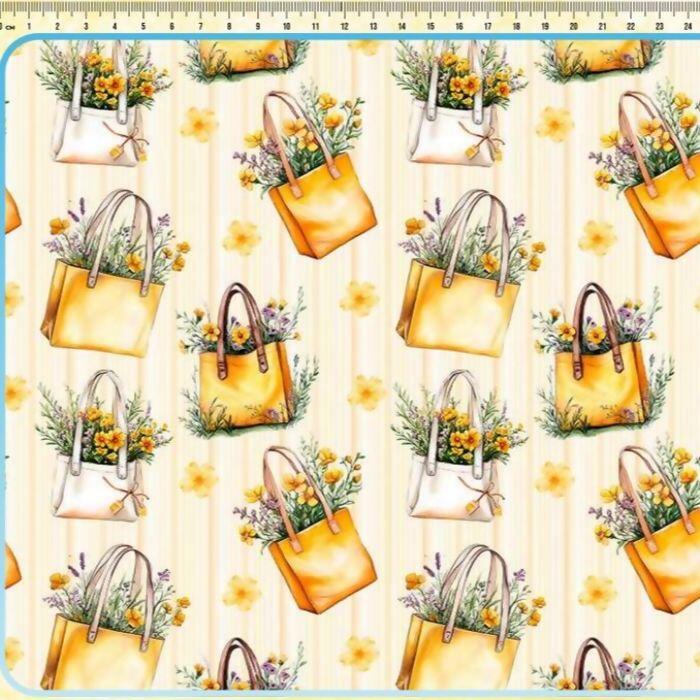 Tecido Tricoline Digital Bolsas Amarelas Com Flores