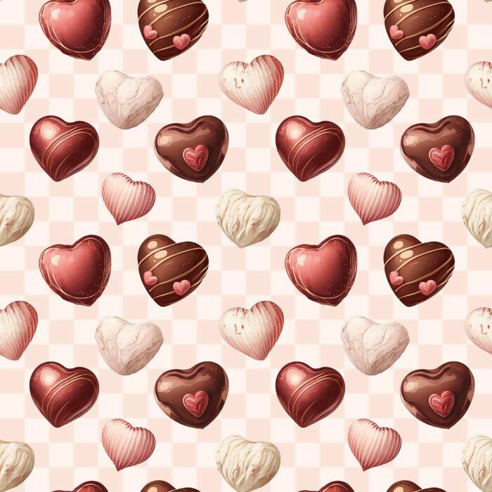 Descrição Tecido Tricoline Digital Bombom de Coração Xadrez