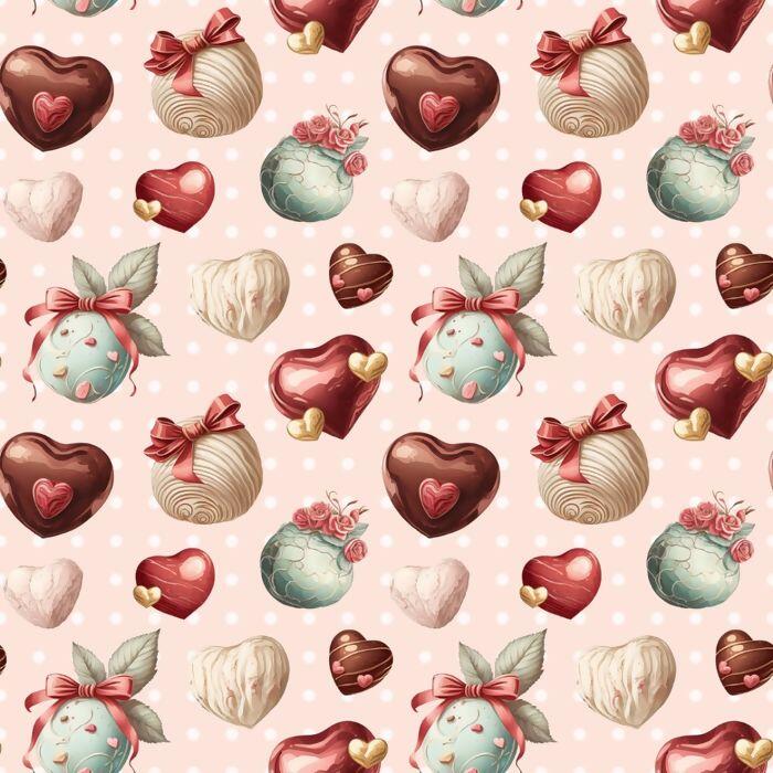 Descrição Tecido Tricoline Digital Bombons e Docinhos Fundo Poá Rosê
