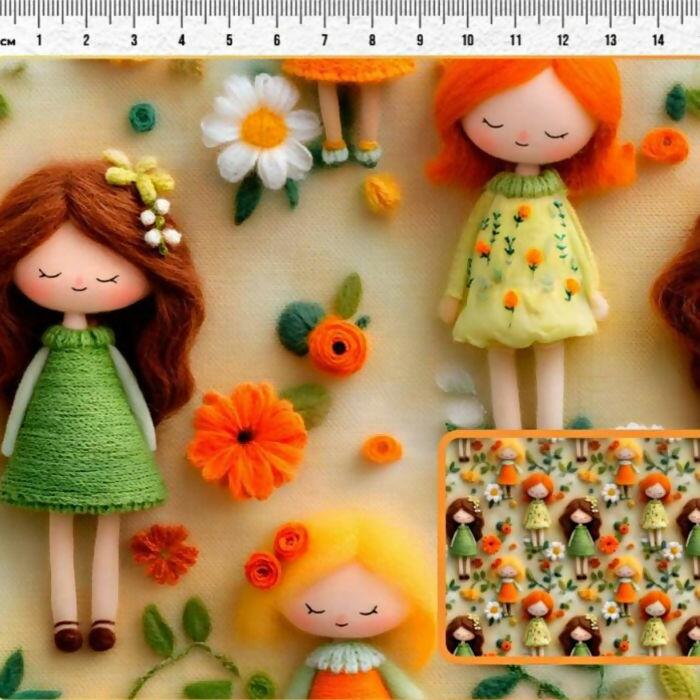 Descrição Tecido Tricoline Digital Bonecas Fundo Bege