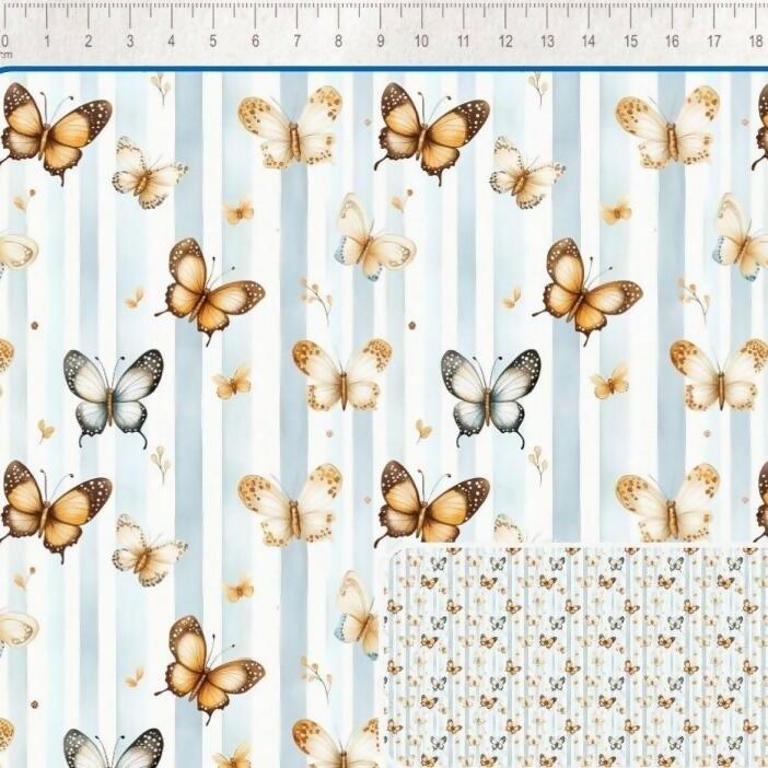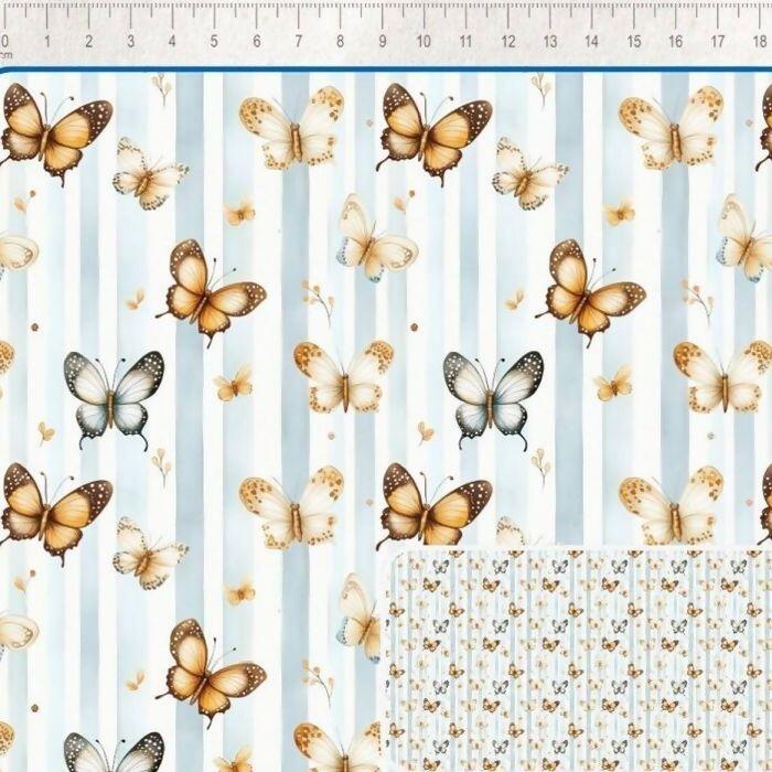 Descrição Tecido Tricoline Digital Borboletas Fundo Listrado