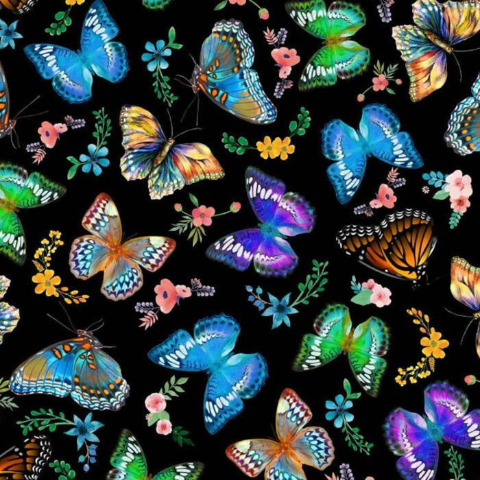 Tecido Tricoline Digital Borboletas Fundo Preto