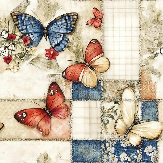 Tecido Tricoline Digital Borboletas Fundo Xadrez