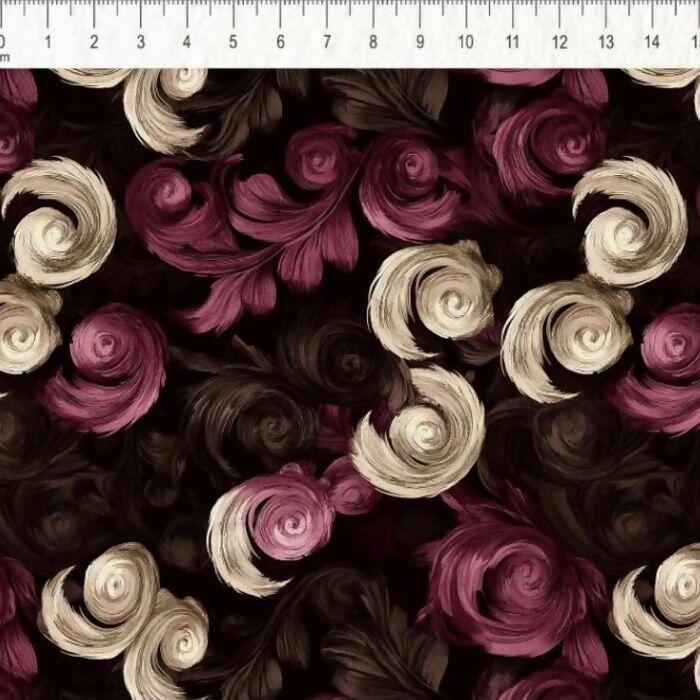 Descrição Tecido Tricoline Digital Bordeaux Caracóis
