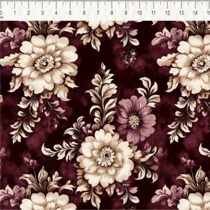 Descrição Tecido Tricoline Digital Bordeaux Mandala