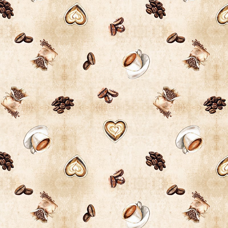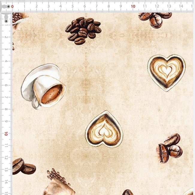 Descrição Tecido Tricoline Digital Café Fundo Creme